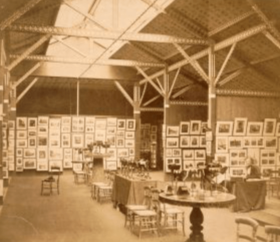 The first ever photographic exhibition was held in 1858 in the Victoria and Albert Museum. It was recorded On 12 February 1858 by Henry Cole, the founding director of the South Kensington Museum, writing in his diary ‘Museum: Queen &c came to private view of the Photographic Socy, being the first exhibition in the Refreshment upper room’. The exhibition was photographically recorded by the museums photographer Charles Thurston Thompson creating the earliest known photographs of an exhibition space.